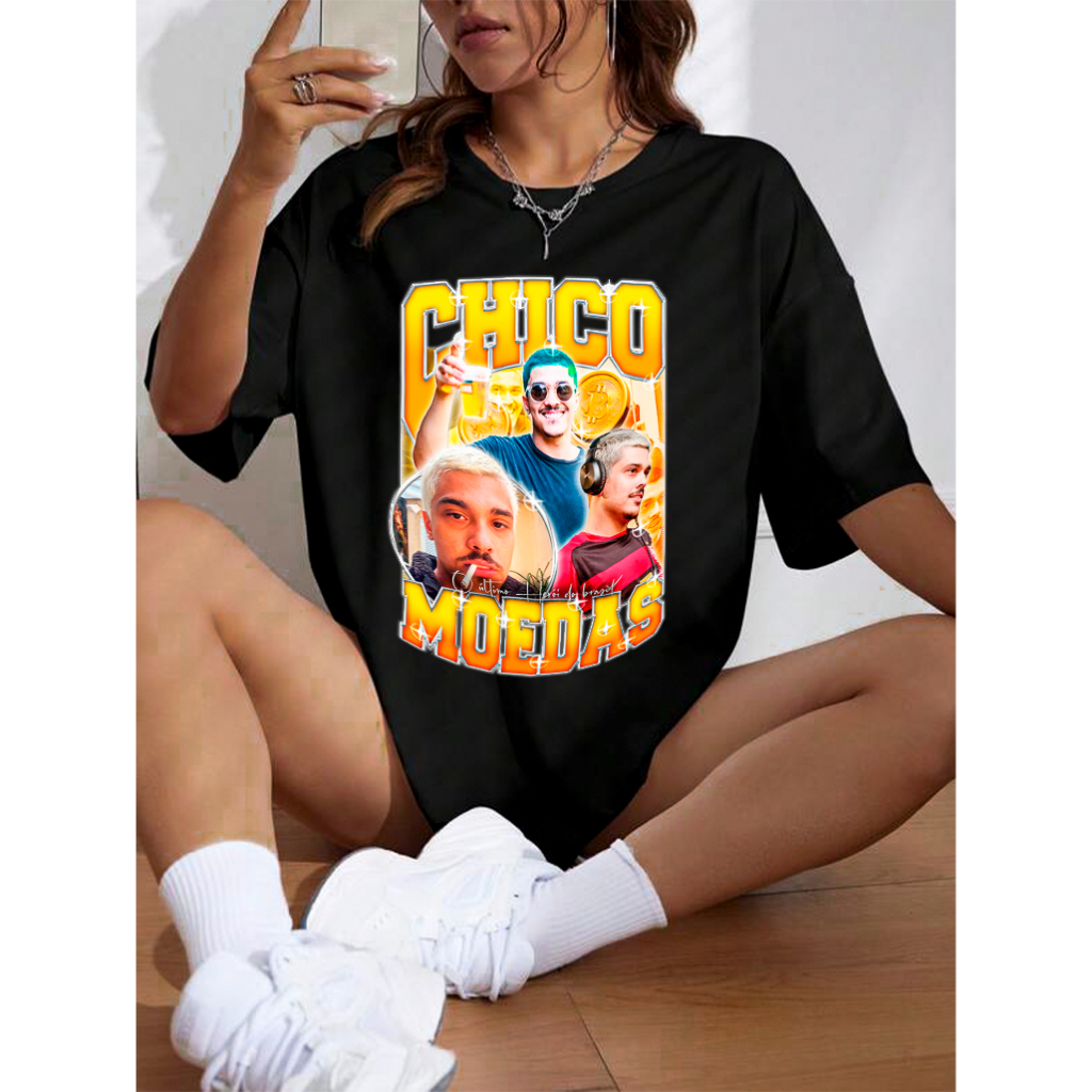 Camisa OVERSIZED Camiseta Chico Moedas BitCoin Herói Meme Luisa Sonza Unissex Bootleg