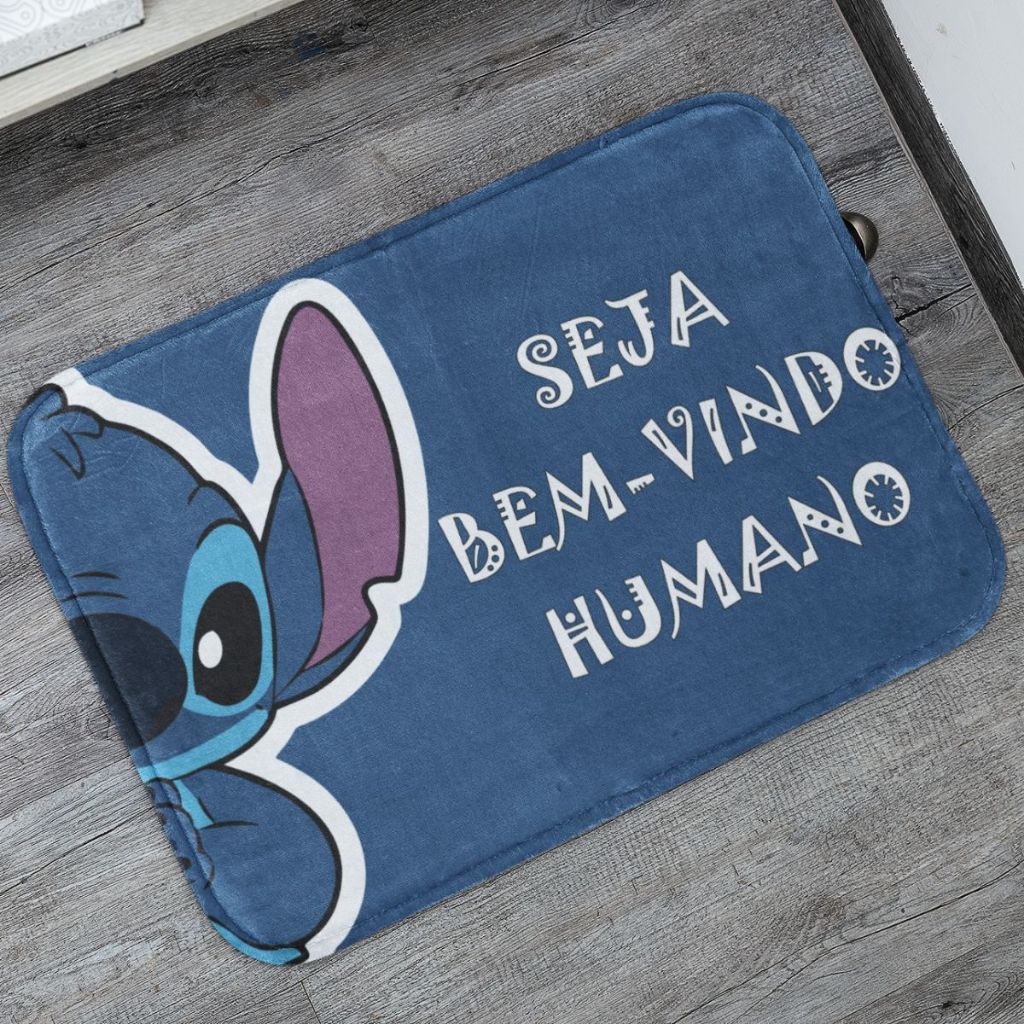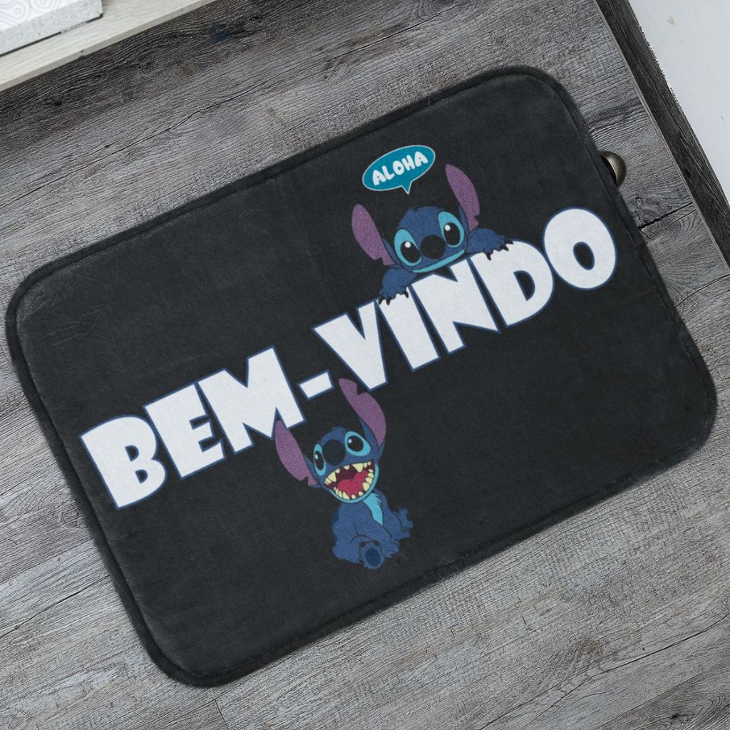 Tapete Porta de Entrada Bem-Vindo Stitch 55x35cm Antiderrapante