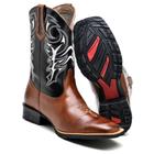 Bota Masculina Texana Cowboy em Couro Solado Bicolor Bico Quadrado 2501 Cano Alto Bordado 37 ao 47