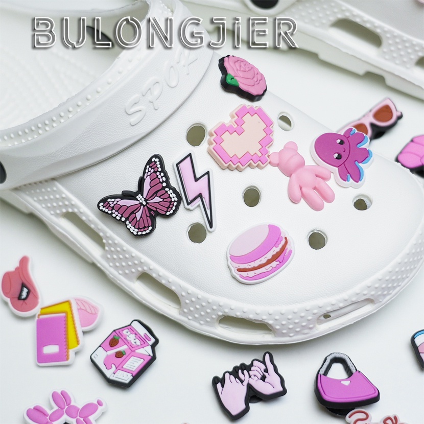 Jibbitz Crocs Shoes Charms/Fêmea ins Fashion Pink Pins Botão/Clog Acessórios