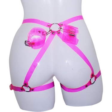 Fantasia Harness com algema neon metalizado e preto carnaval bdsm bondage