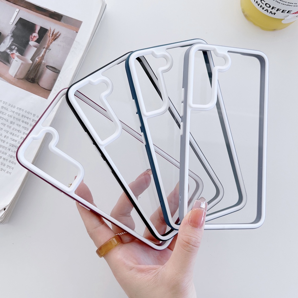Capa Transparente De Acrílico Com Cor Lisa + Moldura De Silicone Para Samsung Galaxy S22 Ultra S22 + S22 A13 A53