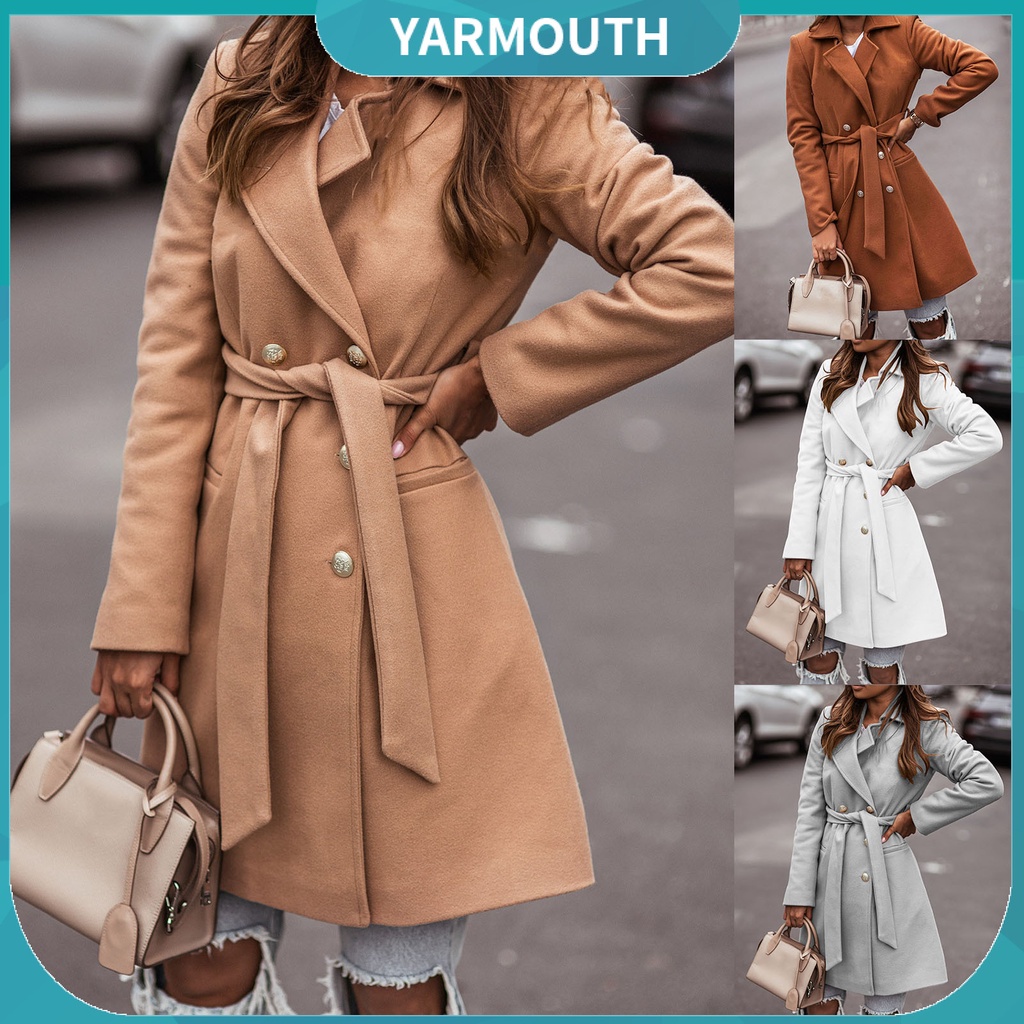 YYR_ Casaco/Sobretudo Feminino De Cor Lisa Com Bolsos Para Escritório