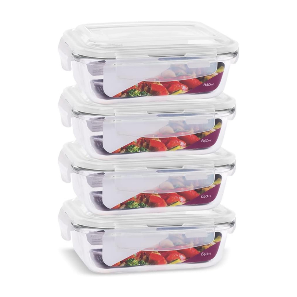 Kit 4 Potes de Vidro 640 ml Hermético Marmita Fit com Tampa 4 Travas
