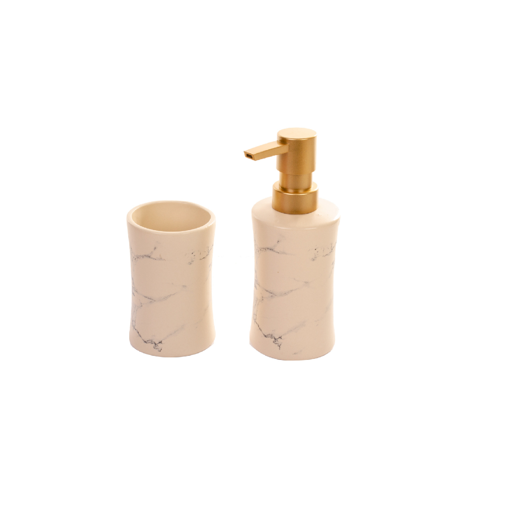 Kit Conjunto Cerâmica Para Sabonete Líquido e Copo Marfim 230ml 2 Pçs