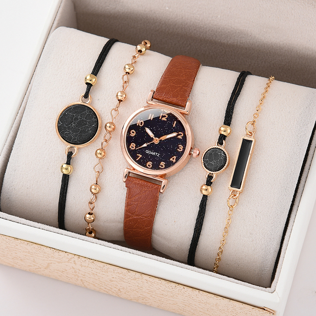 5pcs/set Boutique gift Spot Conjunto De Presentes Personalidade Da Moda Relógio Feminino + Bracelete