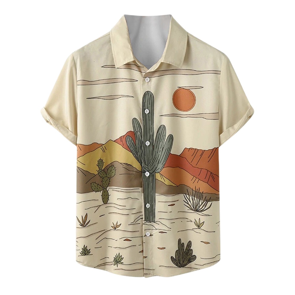 2022 Verão Camisa Havaiana Designer Masculino Cacto Deserto Camisas Paisagem Do Planta Tropical De Manga Curta Vintage