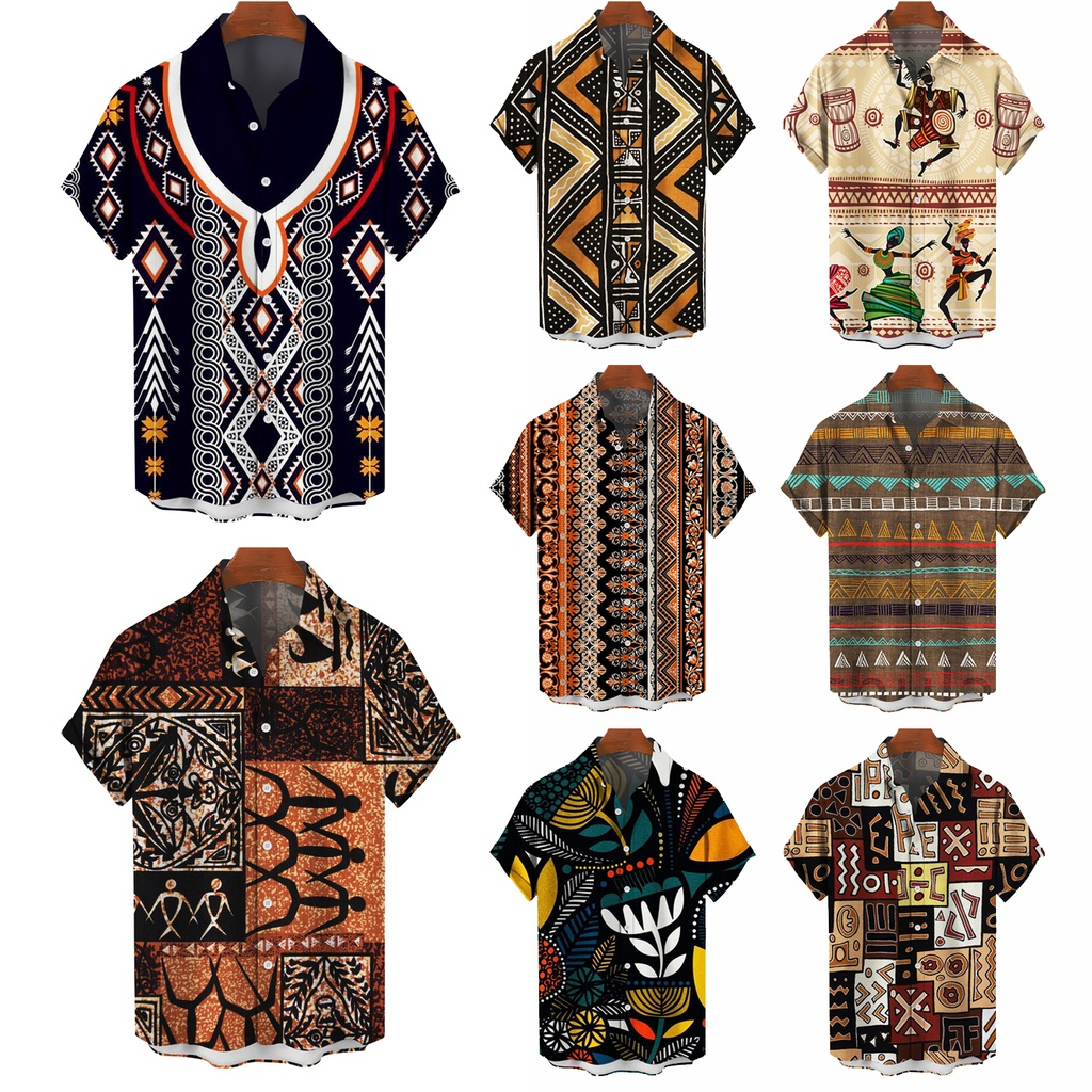 2023 Novo Casual De Verão Masculino Branco Boho Praia Havaiana Floral De Lapela Solta Camisa De Manga Curta Botão De Impressão Tamanho Up Plus