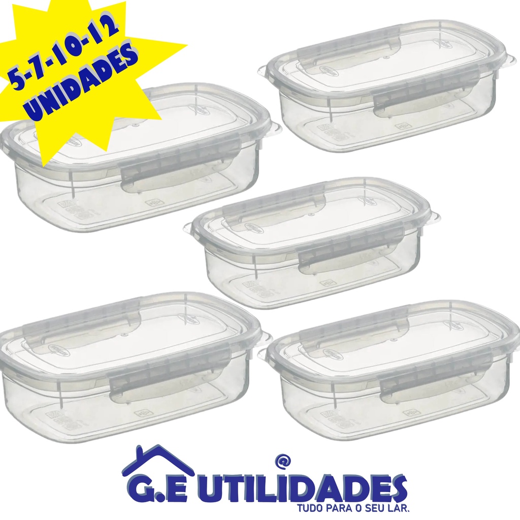 Kit 10 unidades de Marmitas Fitness 500ml Para Freezer E Micro-ondas Potes Plásticos transparente com Trava Hermético, vasilha, marmita, kit cozinha econômico, conjunto de potes.