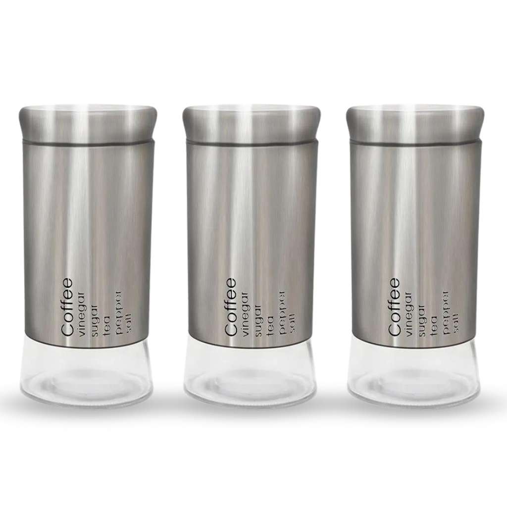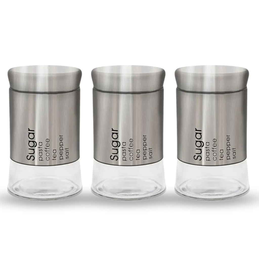 Conjunto 3 Potes Porta Mantimentos Tampa Hermético Will Vidro E Inox 800ml