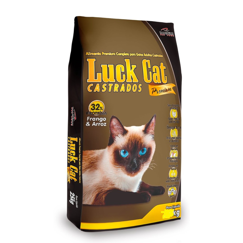 Racao gato Castrado barata luck cat 10kg frango e arroz Premium 32%
