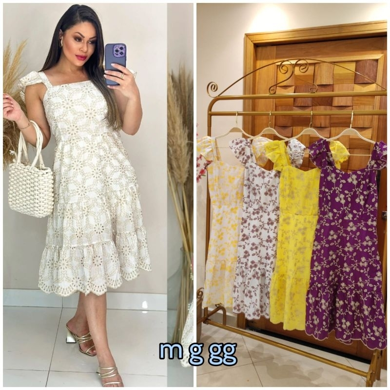 Vestido Lasie Bordado 100% Algodão Longo Casual Luxo Romantico Moda Cristã Evangelica Tres Marias Manga Princesa Lancamento