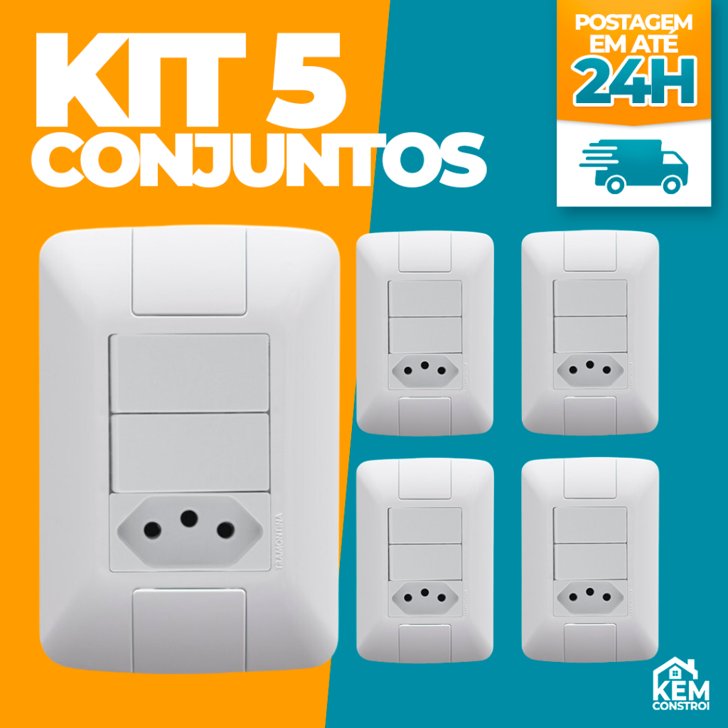 Tomada Interruptor Conjunto 4x2 10A 20A Tecla Simples Paralelo Ilumi Stylus Monte Seu Kit