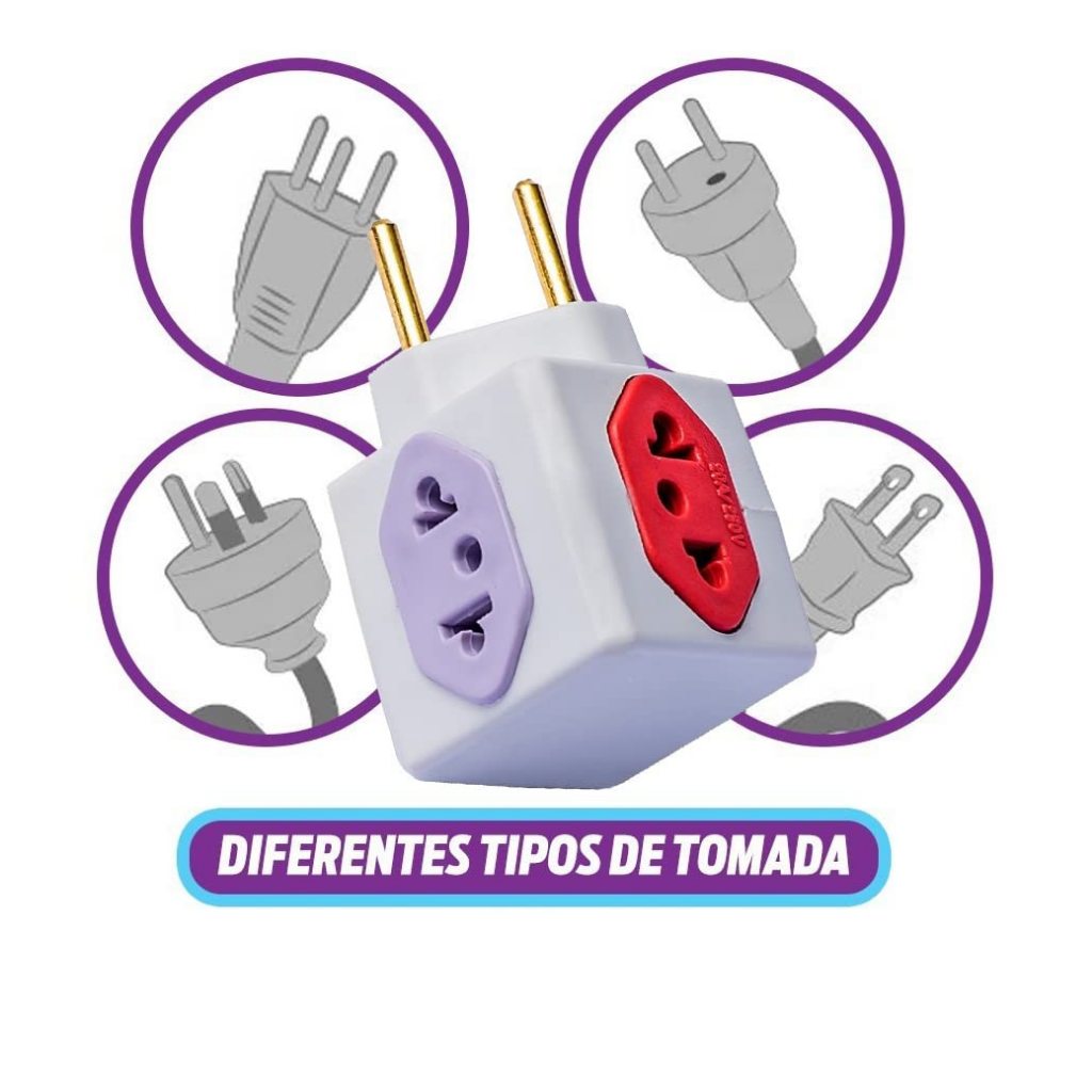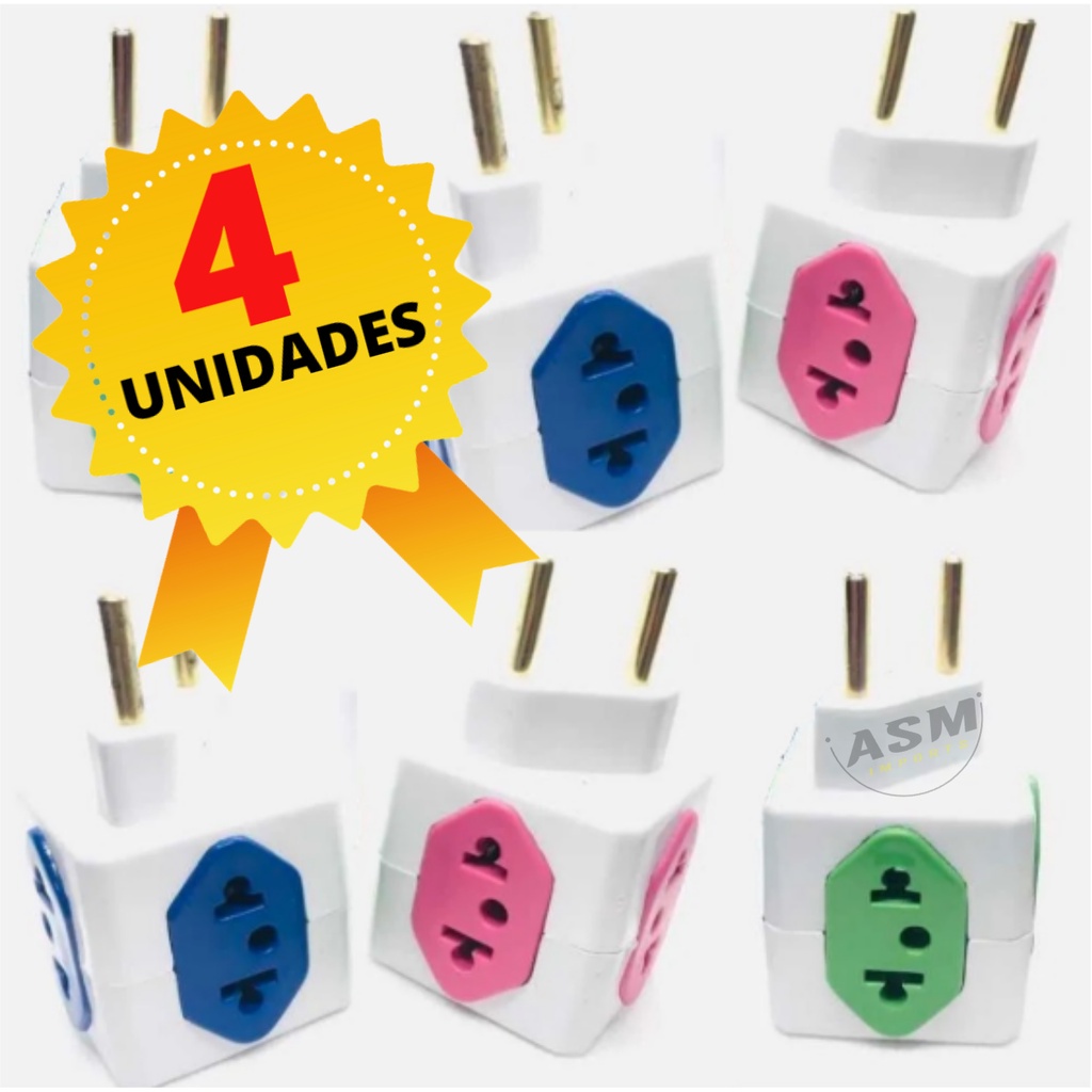 Kit Com 4 Adaptadores de tomadas Benjamin Cubo 3D Com 4 Entradas 3 de 10 Amperes E 1 Entrada de Tomada 20 Amperes coloridas Plug Padrão Novo 3 Pinos