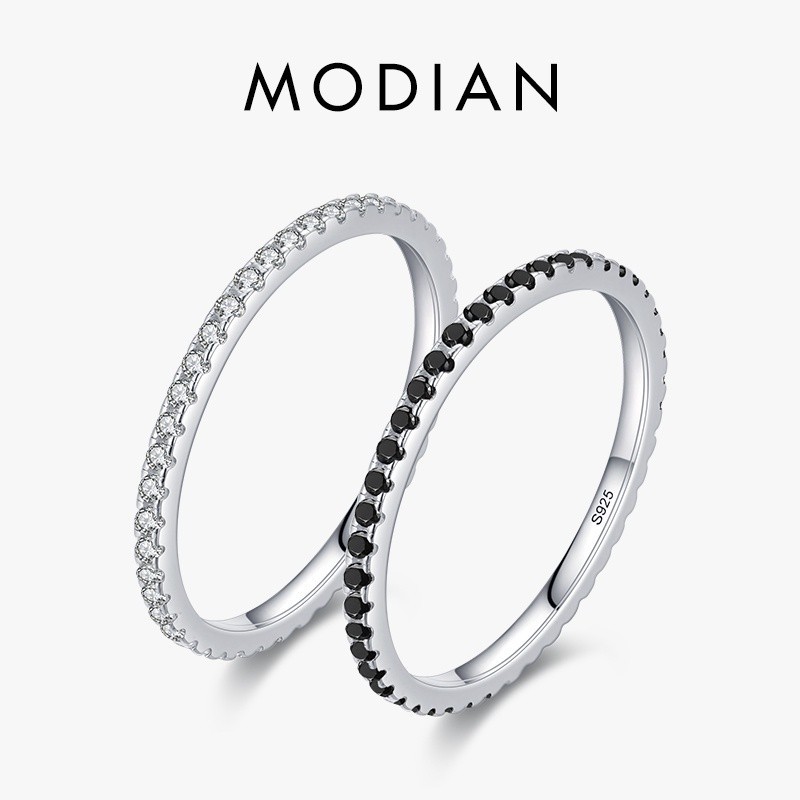 MODIAN Real Silver Black Zirconia Anéis Empilháveis De Prata De Dedo De 925 Sterling Para Festa Feminina Jóias Finas