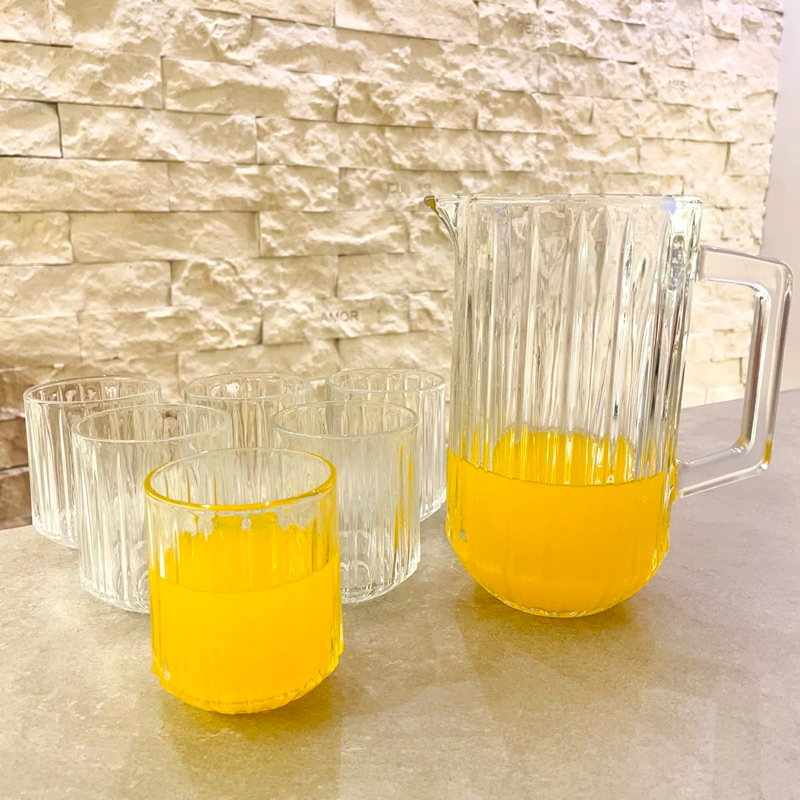 Conjunto Lohan de Vidro – 1 Jarra 1,48L + 6 Taças 200ml | Elegância para Servir com Estilo