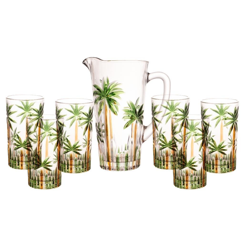 Conjunto Jarra e 6 Copos de Cristal Palm Tree Handpaint 1,2 L e 360 ML - Wolff