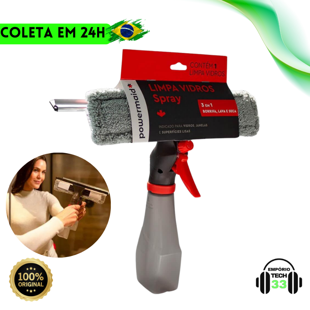 Limpa Vidros Spray 3 em 1 Lava Limpa e Seca Multiuso Com Pano de Microfibra MOP Rodo e Borrifador 240ml Limpeza Profunda