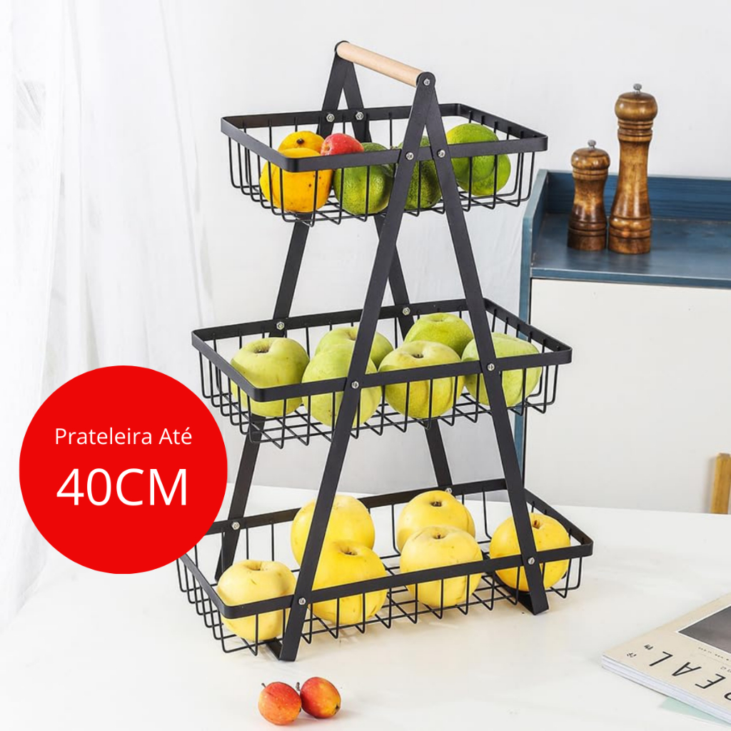 Cesto Fruteira de Mesa 40cm Aramado até 3 Andares em Metal Organizador Multiuso Frutas Legumes e Verduras