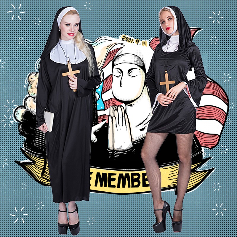 Traje De Halloween Para Adultos Black Sexy Nun Prinest Cosplay Mulheres Muçulmanas Vestir Homens Christian Priest Church Pai Robe Festa De Carnaval Vestimenta De Casal