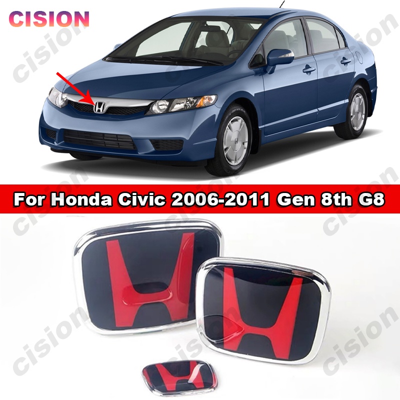 1PC Honda Black Red 3D Emblema Vermelho Preto Dianteiro Volante Traseiro Logotipo Da Tampa Do Painel De Direção Para Civic FD 2006-2011 Acessórios De Estilo Acrílico