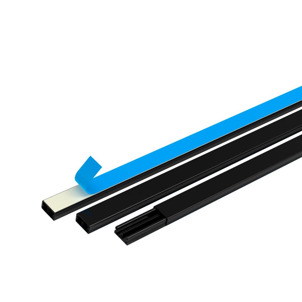 Kit 2 Canaleta PVC Preto com Fita Dupla Face de 1 Metro