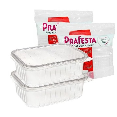24 Potes 250ml/500ml Retangulares Descartáveis Com Tampa Para Freezer e Microondas Prafesta