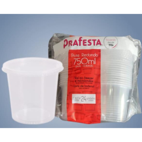 Pote de Plástico Descartável para Alimentos Redondo com Tampa 750ml com 24 Unidades Prafesta