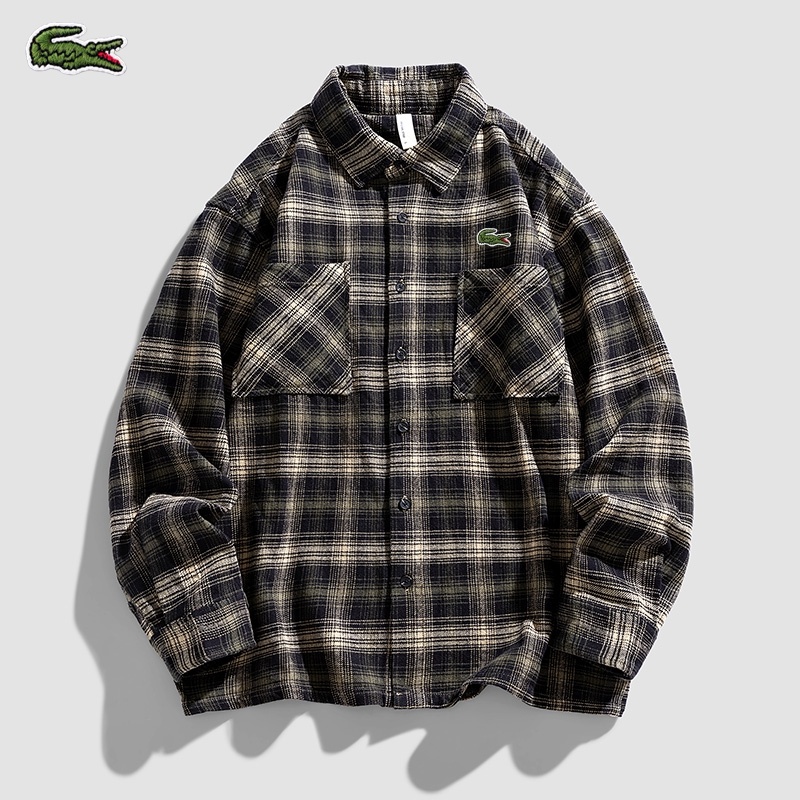Lacoste Crocodilo Camisa de Crocodilo para Homens Camisa de Lapela Listrada Casual Casaco Solto Top z797