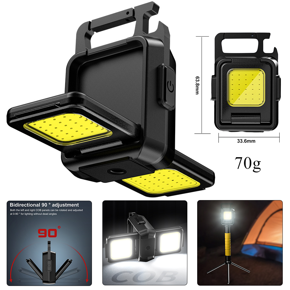 Chaveiro multifuncional luz dupla face cob luz de trabalho magnética ao ar livre recarregável barraca de acampamento portátil mini lanterna