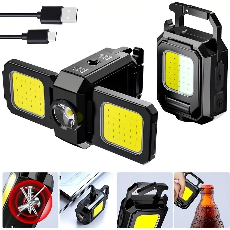 Mini Lanterna Chaveiro COB Luz De Trabalho USB Lâmpada Recarregável Com 90 ° Luzes Laterais Dobráveis Super Brilhantes