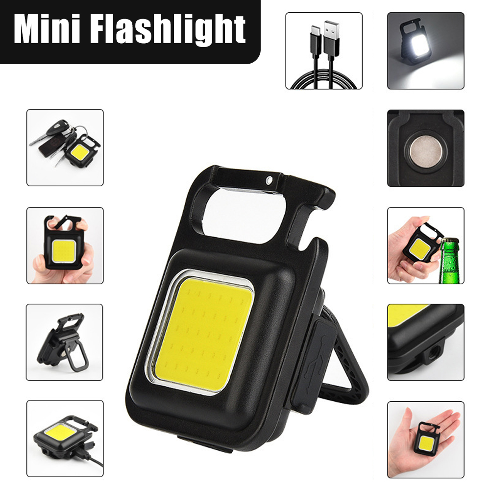 Mini Lanterna Chaveiro Cob Led Portátil Luz De Emergência Acampamento Recarregável Usb