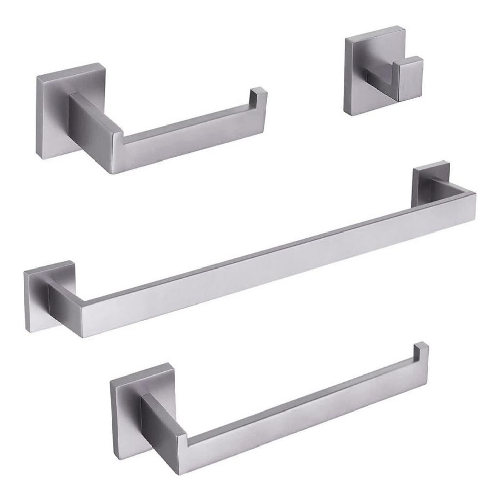 Kit Acessórios Banheiro Prata Inox 304 Escovado Luxo 4 Peças