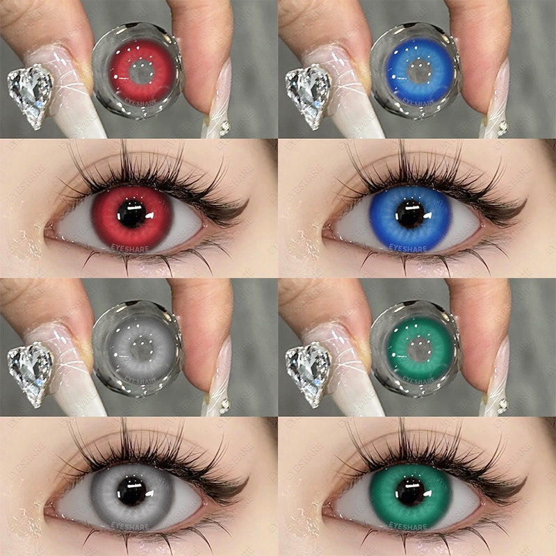 Lente De Contato Colorida Eyeshare Blue/Green/Purple/Red Lentes Com Uso Anual Natural 2Pcs Cosplay Eyes Lens