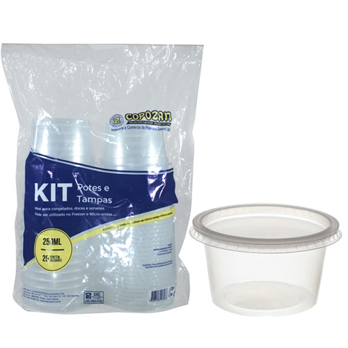 Pote Plástico Descartável Redondo C/tampa 250ml C/ 25 Unids