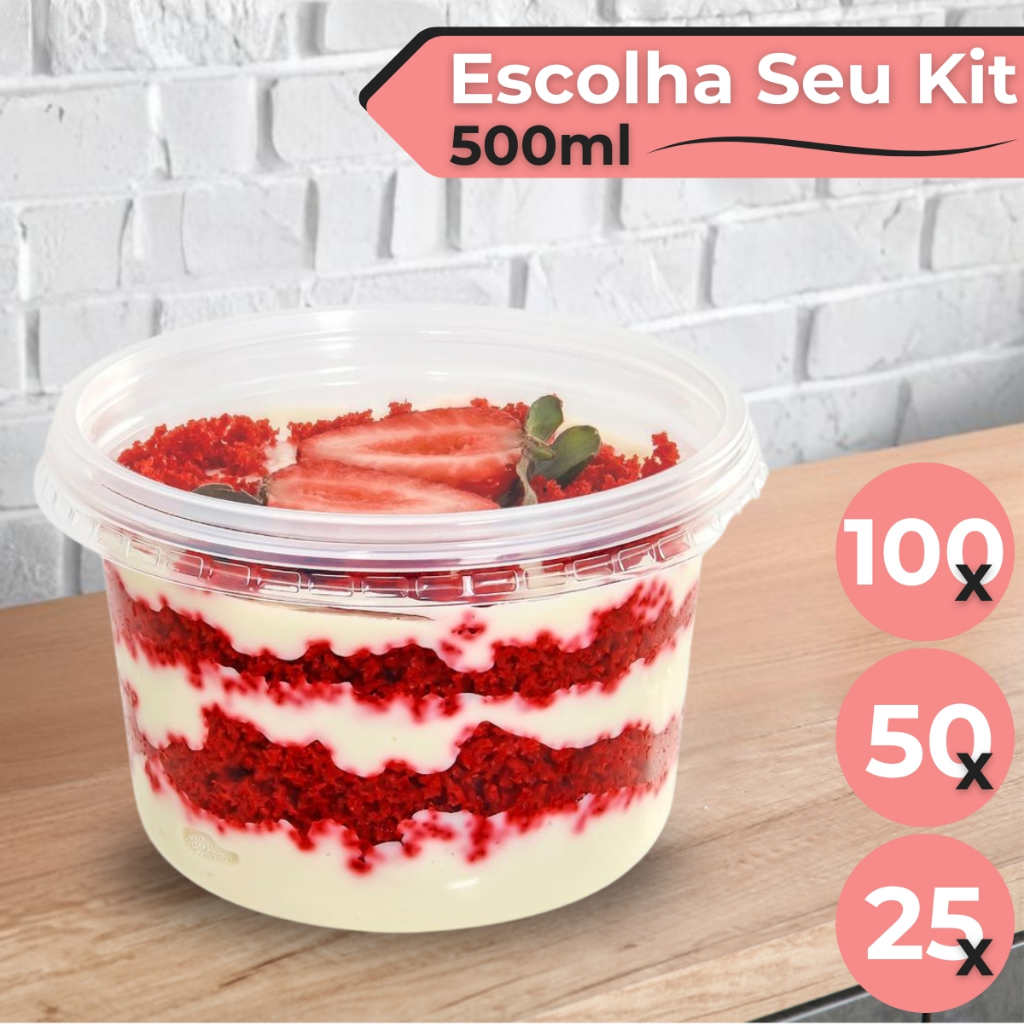 25 / 50/ 100 Unidades Potes de Plástico 500ml Redondo Descartável C/ Tampa Perfeito P/ Bolo no Pote