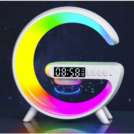 Caxinha de Som G-Speaker Luminária Bluetooth Inteligente Carregador Sem Fio Led Luz Rgb Branca