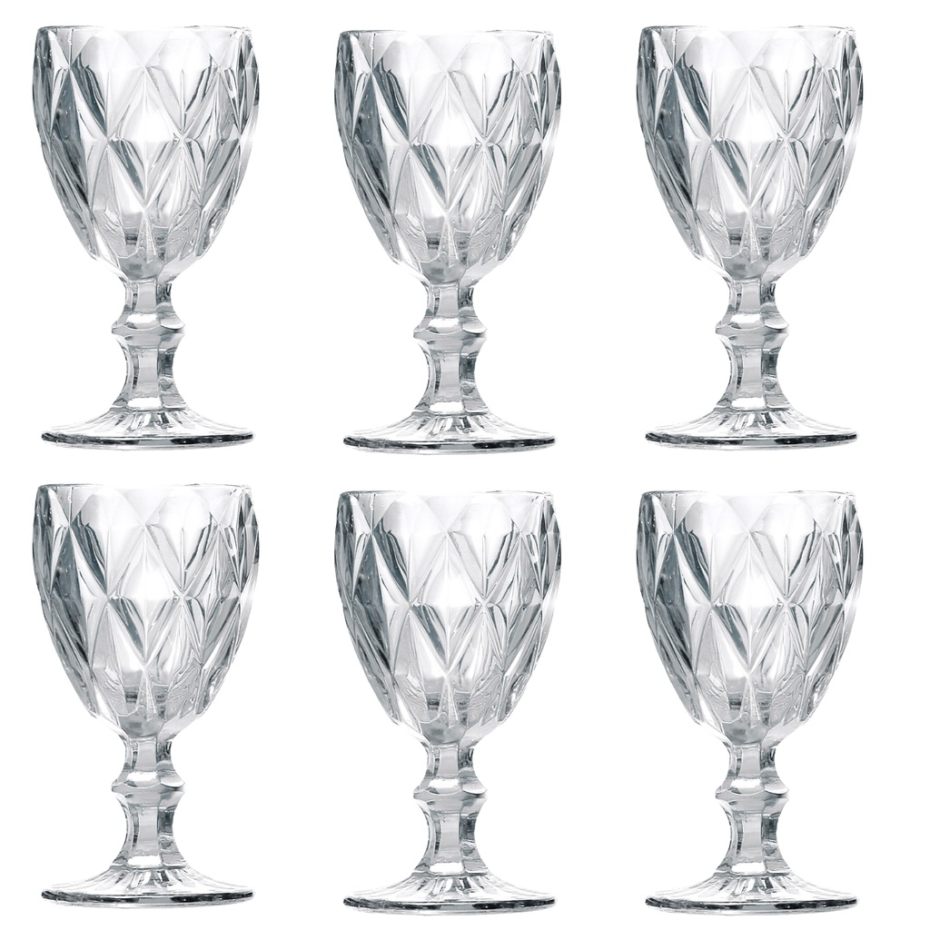 Jogo 6 Taça de Vidro Transparente 340ML Conjunto Diamond P/ Água Vinho Drinks - ELITE