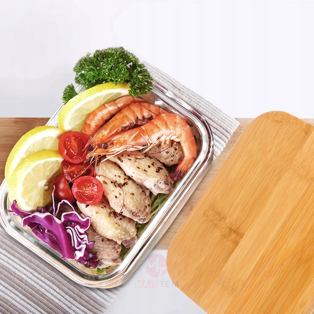 KIT 3 Potes de Vidro Hermetico 370ML/640ML/1040ML Com Tampa de Bambu Pote Organizador Marmita