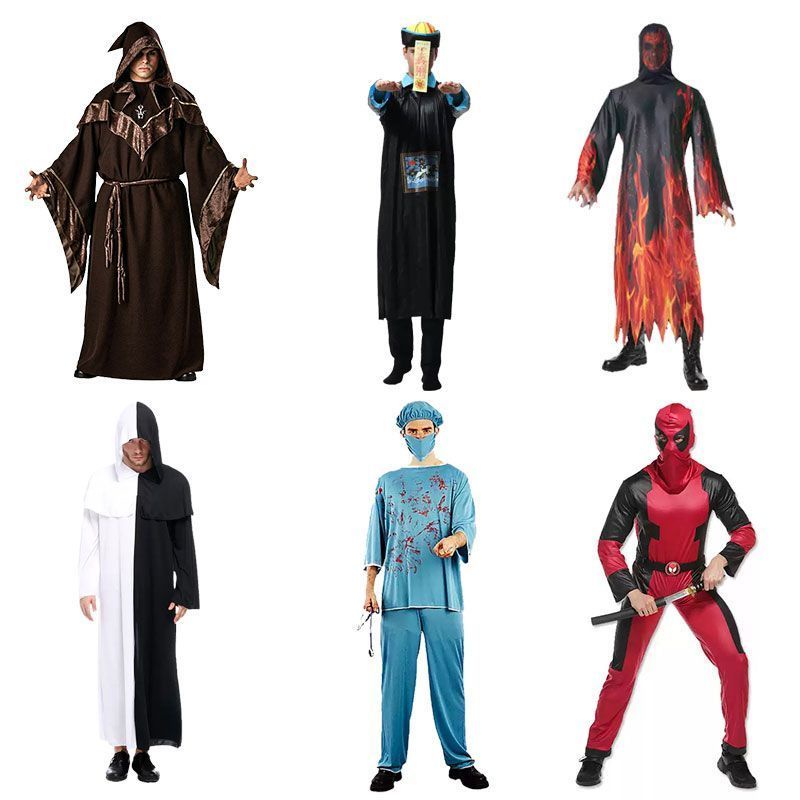 Trajes de Halloween Trajes masculinos adultos Cosplay Wizard Dinastia Qing Zombie Doctor Shows Deadpool Trajes 3ZDJ