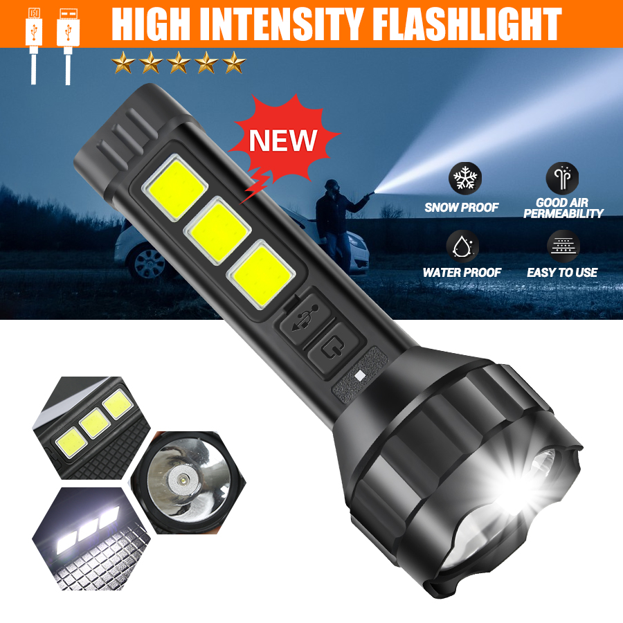 XIWANGFIRE Lanterna De LED Brilhante Recarregável Com Luz Lateral COB 3 Modos De Iluminação De Camping Exterior Poderosa