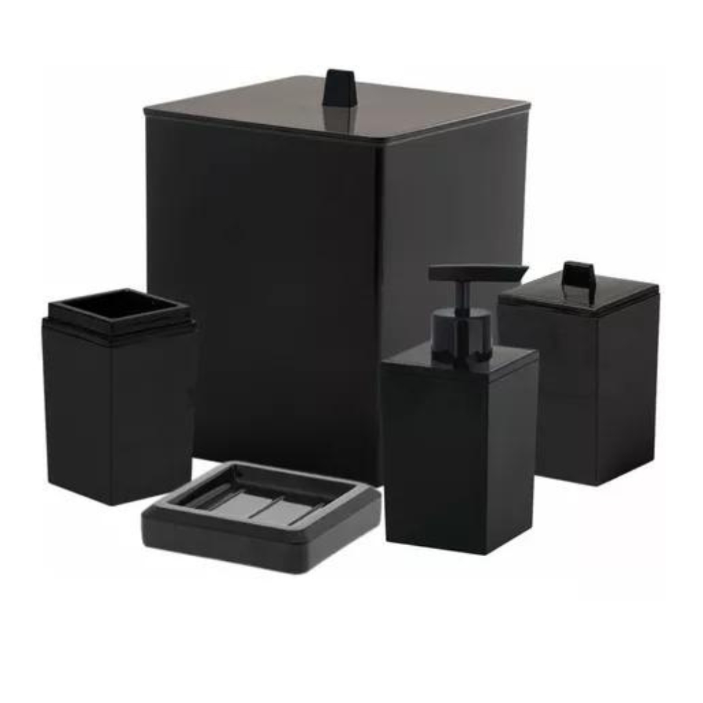 Kit pra Banheiro Mood Square Conjuto Lavabo 5 peças Lixeira Escova Sanitária Bandeja de apoio Nobre