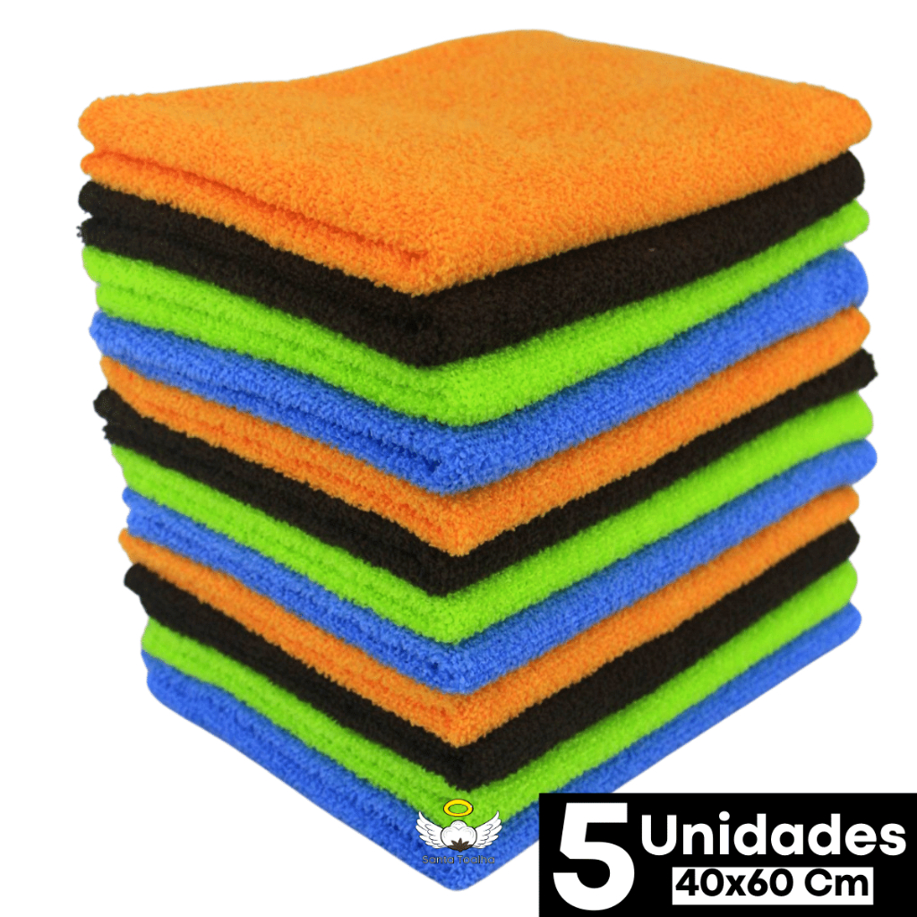 Kit C/ 5 Panos Microfibra 40x60 limpeza em Geral Multiuso
