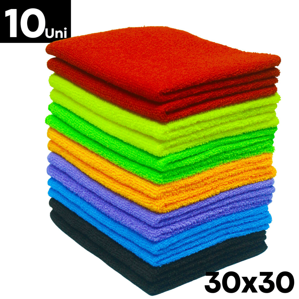 Kit c/ 10 Panos Microfibra para Limpeza Multiuso 30x30