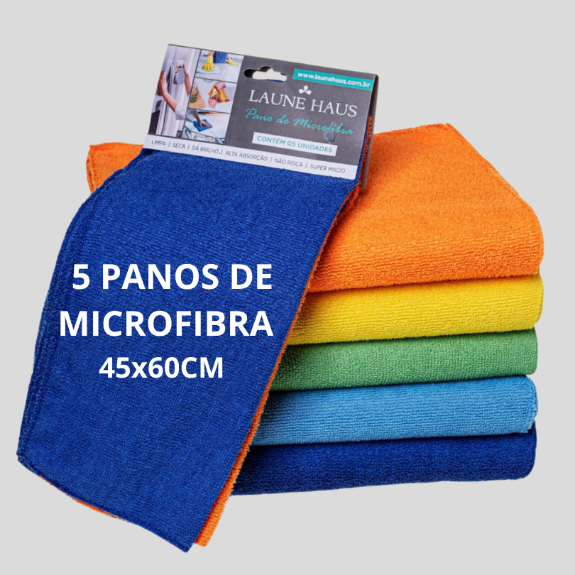 Kit C/ 5 Panos Microfibra 40x60 limpeza em Geral Multiuso Alta Absorção Laune Haus