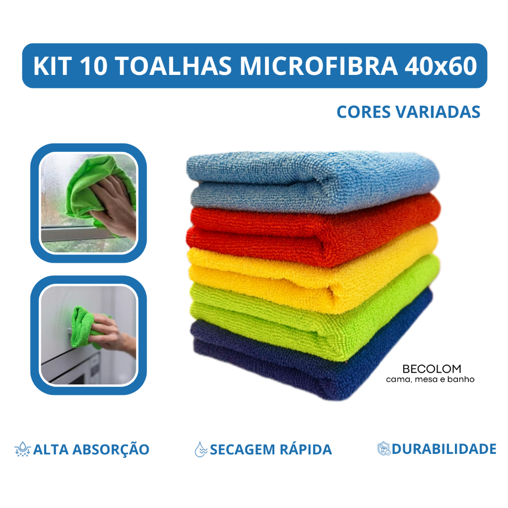 Kit 10 Panos Microfibra 40x60 Multiuso Limpeza em Geral
