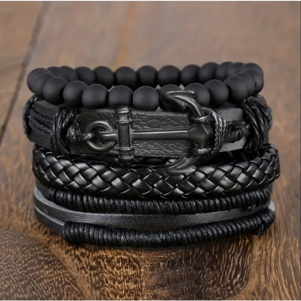 Kit 4 Pulseiras de couro masculino Presente para dia dos namorados dia dos pais aniversario ou amizade