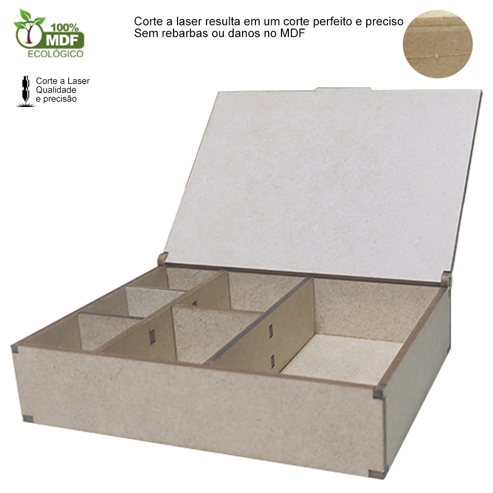 Caixa organizadora com 6 divisórias MDF 14 x 10,5 Especiarias de Gin Bijuterias Parafusos Artesanato - Decori Br