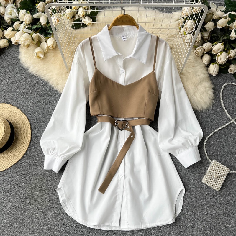Moda Irregular Senior Trajes De Duas Peças Camisa Branca Manga Longa + Cinto De Amor Conjuntos Femininos De Outono