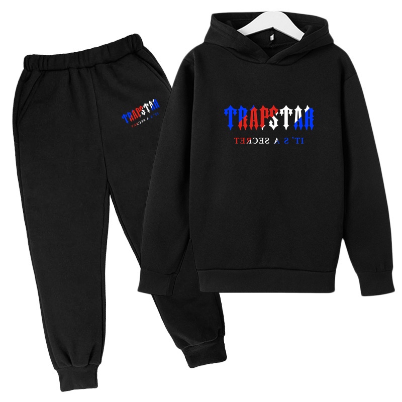 Nova Marca De Roupa Esportiva Sportswear Impresso Infantil Warm Colour Camisola De Duas Peças Com Capuz + Terno De Calças De Corrida Conjuntos de moletom